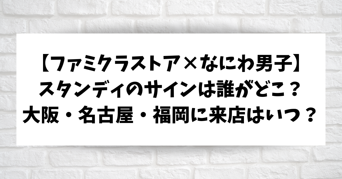 【ファミクラストア×なにわ男子】スタンディサインは誰がどこ?いつ?大阪・名古屋・福岡まとめ