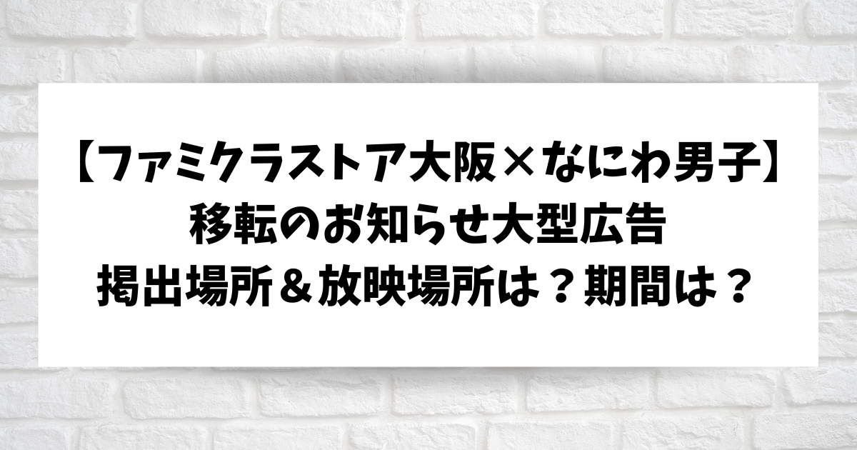 なにわ男子のファミクラストア大阪移転の広告掲出期間・放映期間は?