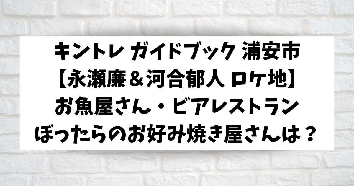 11月1日(土)放送『キントレ』の「キントレガイドブック」で、永瀬廉くんと河合郁人くんが訪れた浦安市の魚屋さん・お好み焼き屋さん・世界一のビールをご紹介します。