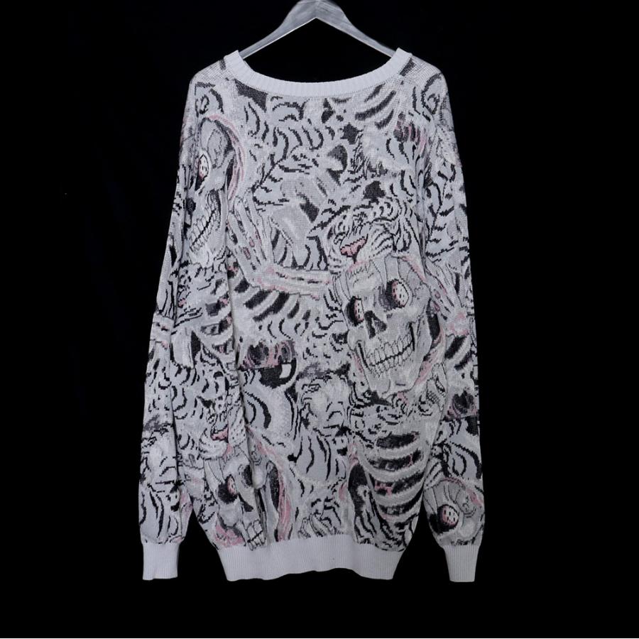 MUSIC FAIR【永瀬廉衣装】スカル&トラ柄ライトグレーニットカーディガン
