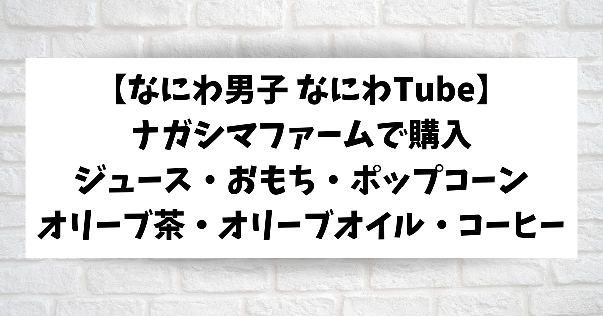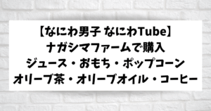 なにわ男子がナガシマファームで購入したジュースやおもち、オリーブポップコーン、オリーブ茶・オリーブオイルなどもご紹介しました。