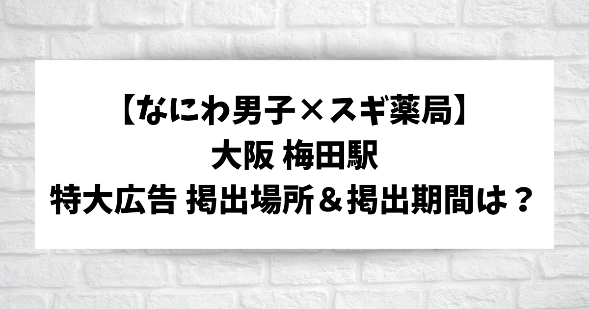 【なにわ男子×スギ薬局】大阪 梅田の特大広告掲出場所はどこ?掲出期間はいつまで?