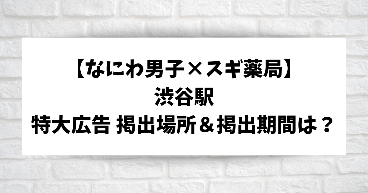 【なにわ男子×スギ薬局】東京 渋谷駅 特大広告の掲出場所はどこ?掲出期間はいつまで?