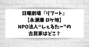 リブート【永瀬廉ロケ地】古民家はどこ?NPO法人「しぇるたー」まとめ