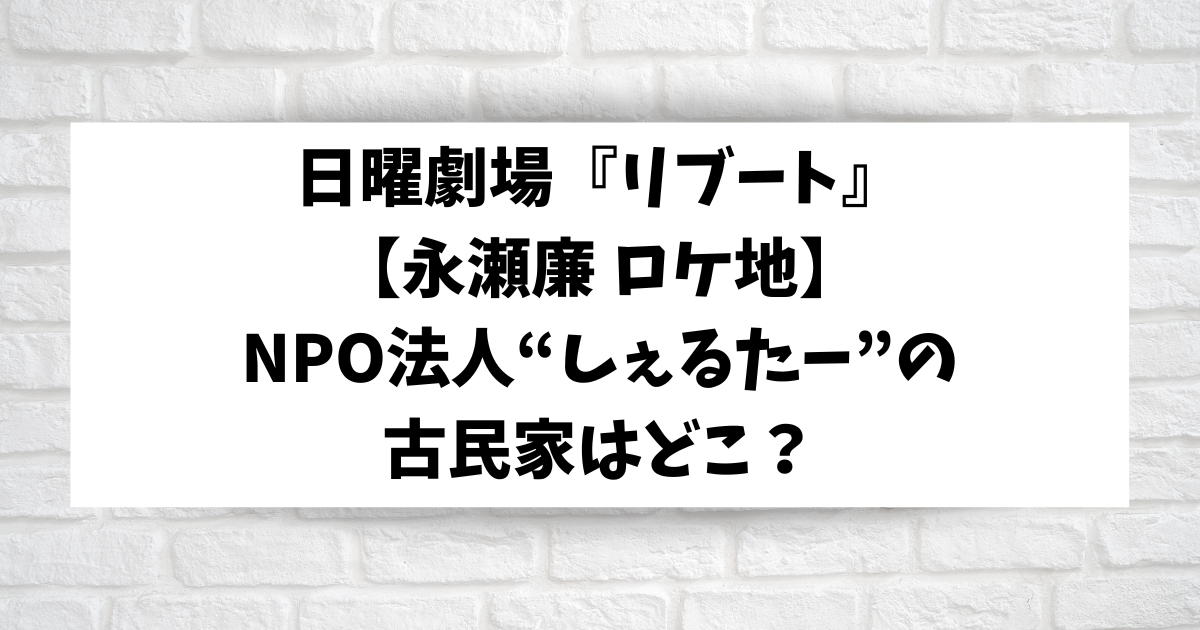 日曜劇場『リブート』第5話で、冬橋航(永瀬廉)が居場所がない子どもたちや若者にごはんをふるまっていたNPO法人『しぇるたー』の古民家の撮影ロケ地をご紹介します。
