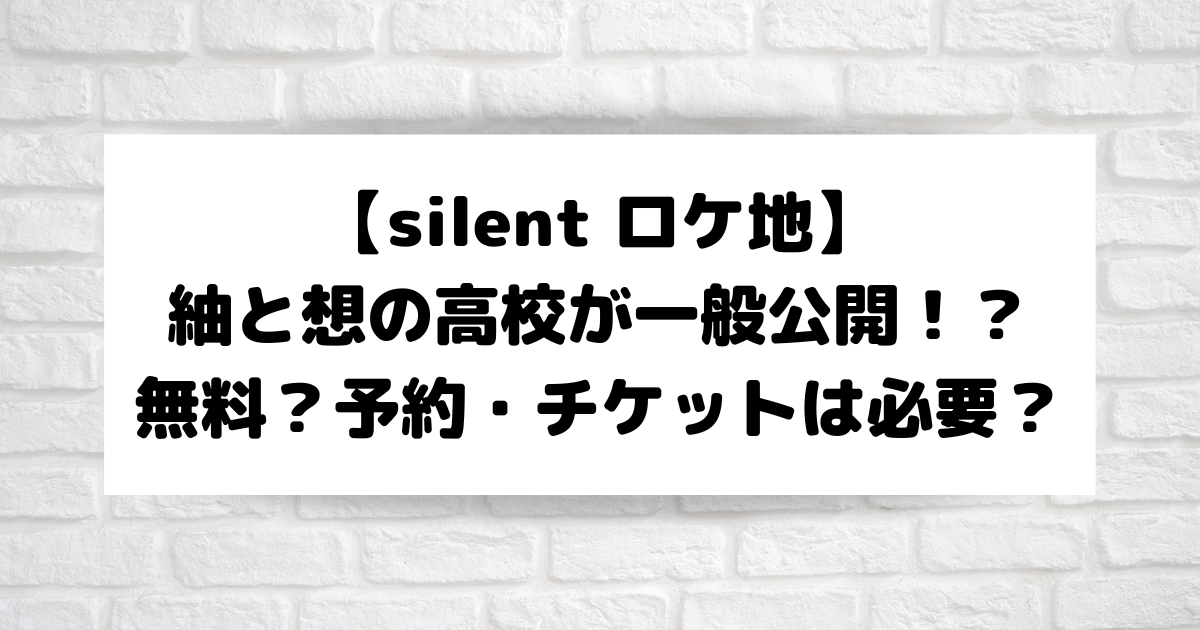 【silentロケ地】紬&想の高校の一般公開見学は予約やチケットが必要?