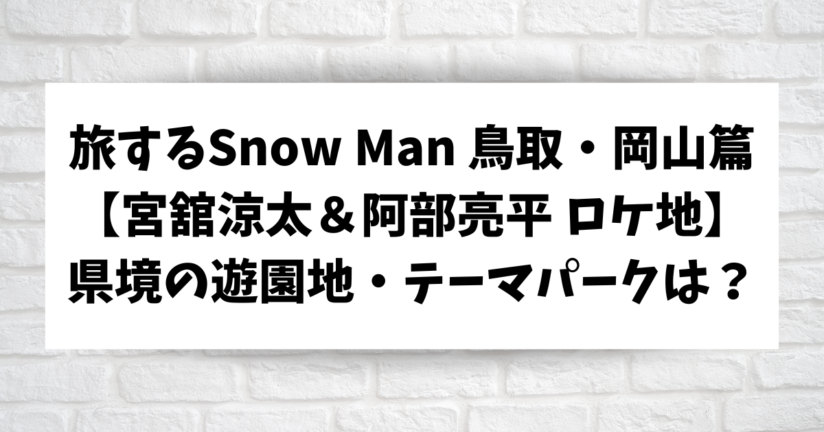 【旅するSnow Man 旅スノ】鳥取・岡山篇の遊園地・テーマパークはどこ?宮舘涼太&阿部亮平 ロケ地まとめ