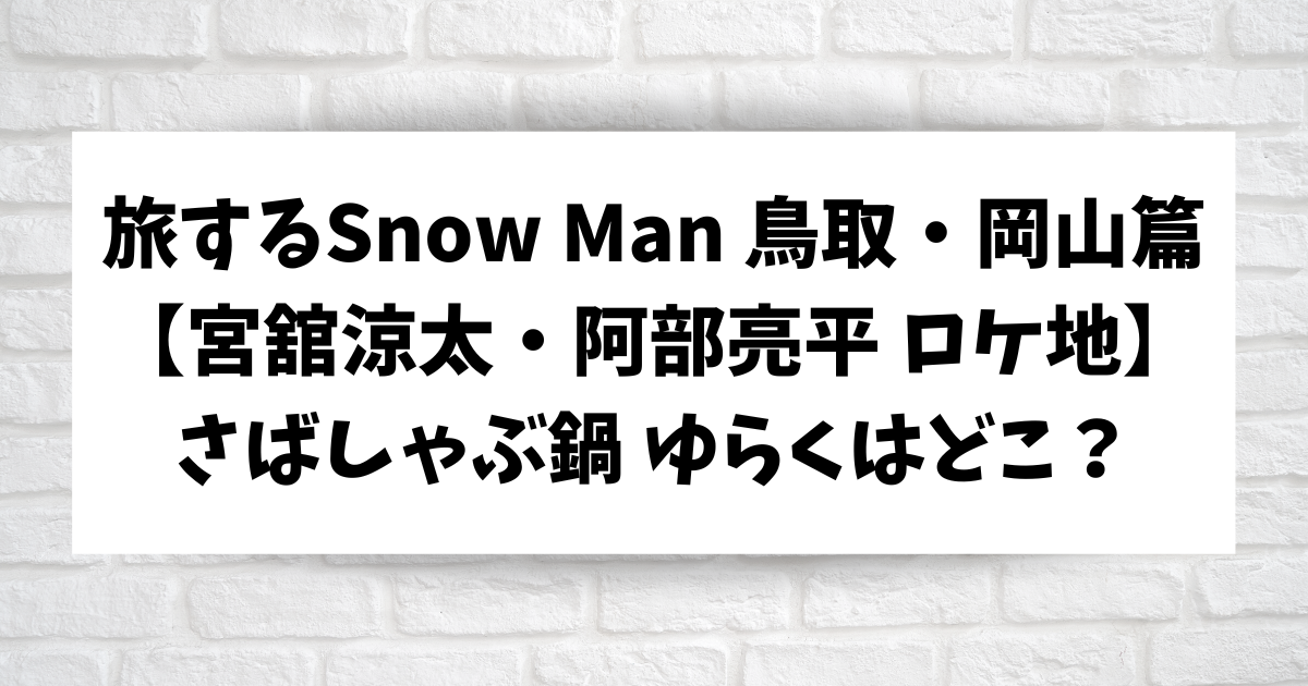 【旅するSnow Man 旅スノ】鳥取 岡山篇の鯖しゃぶ鍋 ゆらくはどこ?阿部亮平&宮舘涼太 ロケ地まとめ