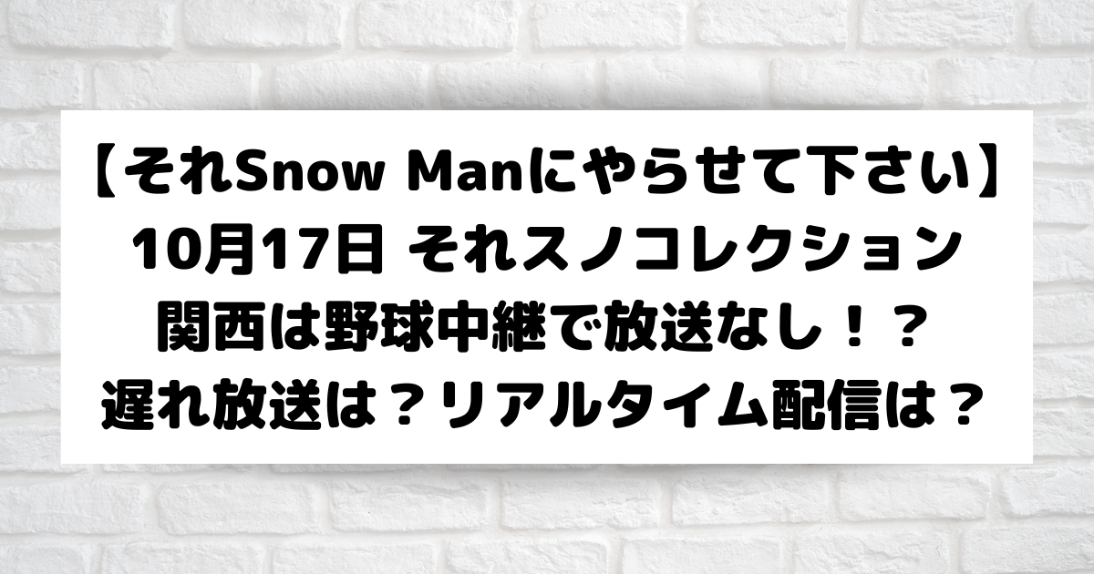10月17日(金)の『それスノ(それSnowManにやらせて下さい)』は、関西MBS毎日放送では野球中継のため放送がありません。