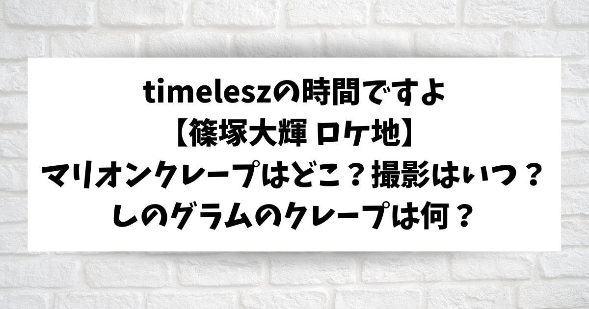 timeleszの時間ですよ【篠塚大輝 ロケ地】マリオンクレープはどこ?しのグラムのクレープは何番?ピーチ?