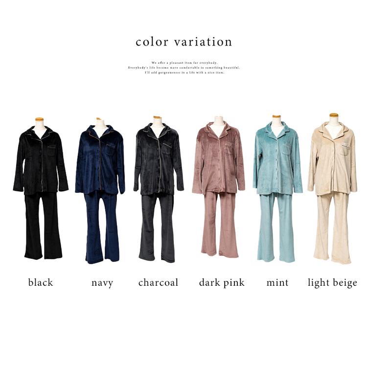 ベロアのような素材感の黒のシンプルなパジャマです。